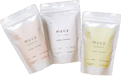 mycy第1段はセルフケアハーブティー。代表含め、メンバーが毎月悩まされる女性の心身の不調を緩和できるように開発した、女性ホルモンをサポートするハーブティーです。
