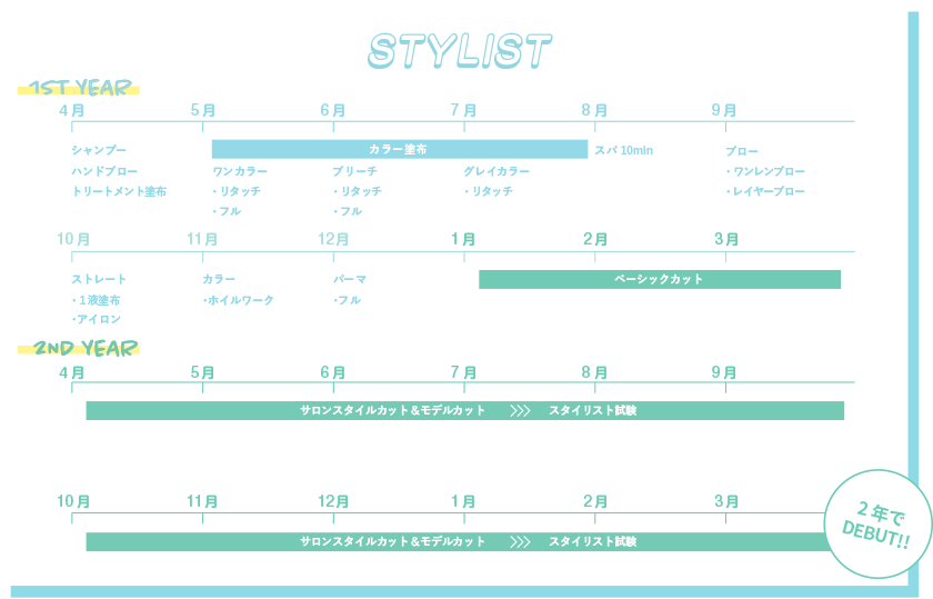 サービスクオリティを高めて、スタイリストデビューを目指しましょう。