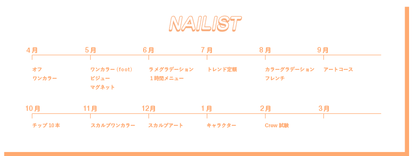 スクール・専門学校ご卒業の方 ※資格保持者/経験者優遇 ・JNE(JNA)3級保持者 ・JNE(JNA)検定またはINA検定の1級資格取得者歓迎! |